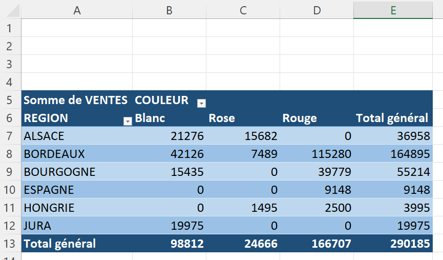 Je souhaite filtrer le tableau afin de voir uniquement les ventes annuelles comprises en 1000 et 3000 €. Choisissez la méthode la plus rapide.