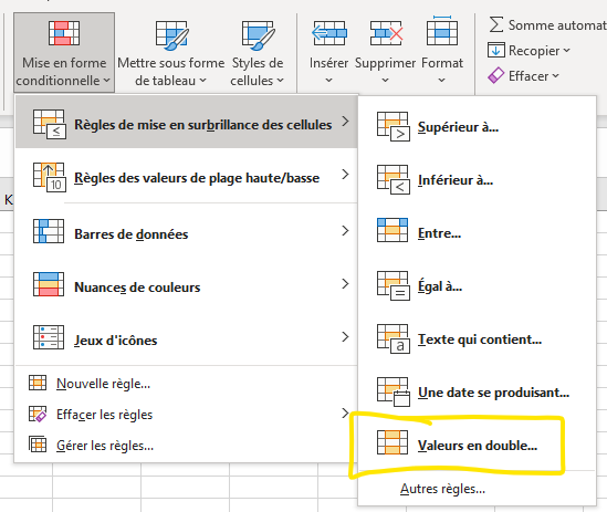 A quoi sert la fonction Valeurs en double ci-dessous ?