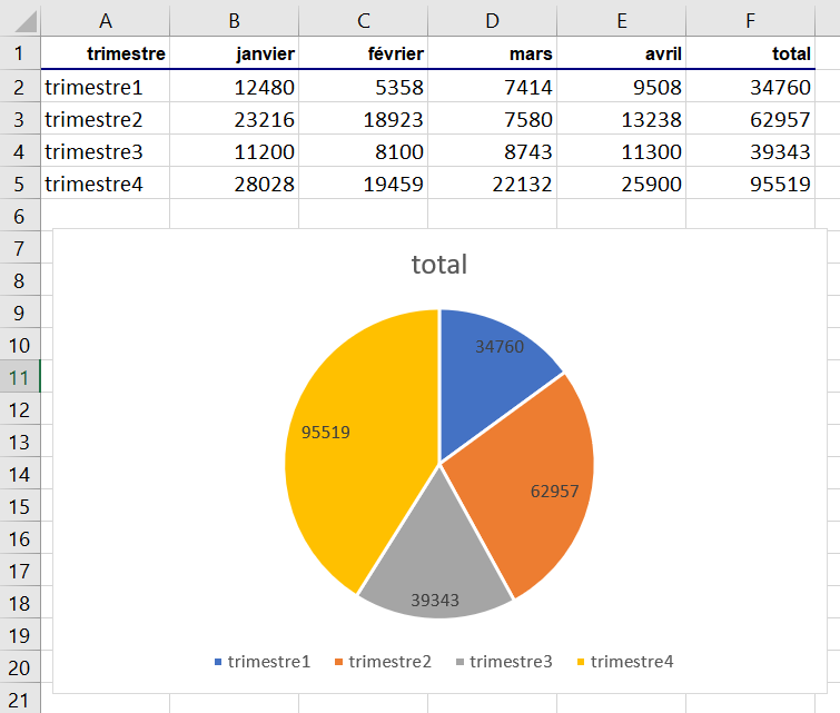 Pour créer ce graphique en secteur à partir de ce tableau, je sélectionne :