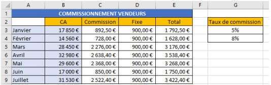 Quelle est la formule a écrire en B6 en respectant la demande formulée en A6 ? Le formule sera recopiée en colonne C et D.
