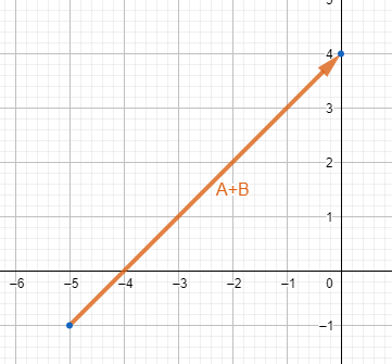¿Cuál vector se obtiene al realizar la suma de los vectores A y B , que se muestran en la imagen?