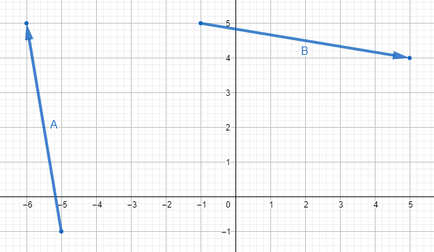 Calcula el ángulo entre los vectores A y B