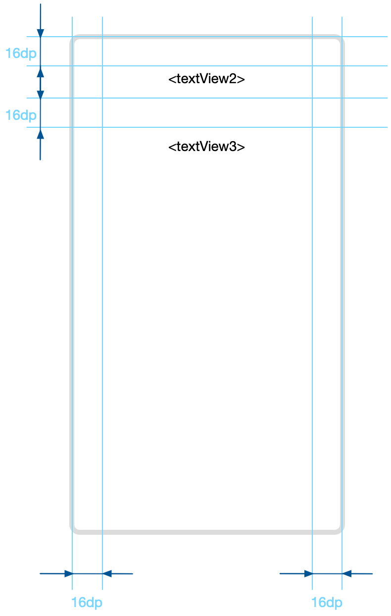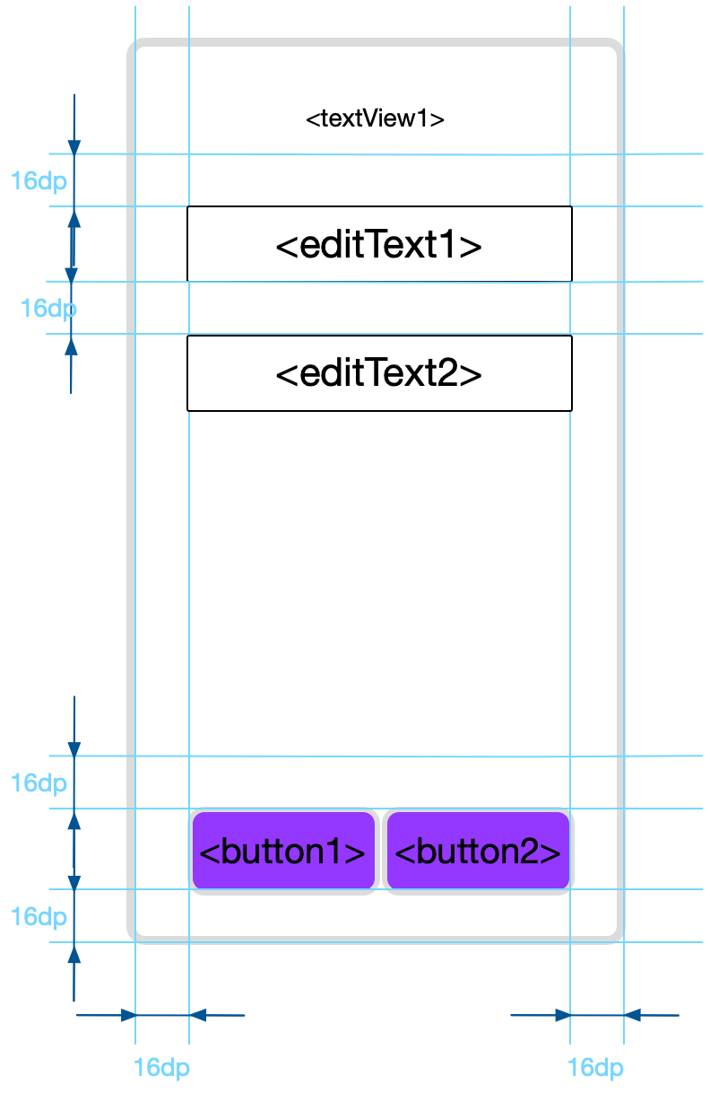 Helyezzen el rajta még pár elemet a TextView alá, mégpedig a lentebbi ábra szerinti elrendezésben és a következő tualjdonságokkal: