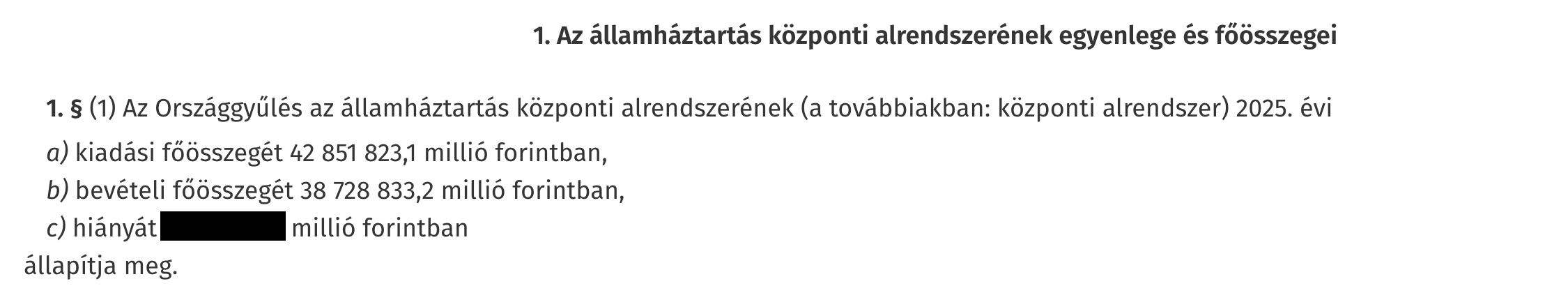 Mekkora összeg szerepel a költségvetési törvény lenti részének kitakart részében? Válaszában a számot szóköz nélkül adja meg!