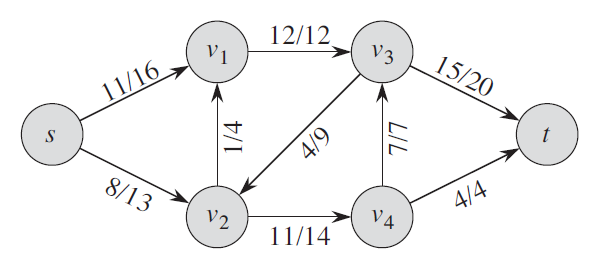 Legyen egy vágása a fenti hálózati folyamnak: ({s, v1, v3},{v2, v4, t}). Azaz S ={s, v1, v3}, T={v2, v4, t}.