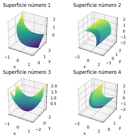 con yAsocia cada superficie parametrizada con los parámetros , con su representación gráfica