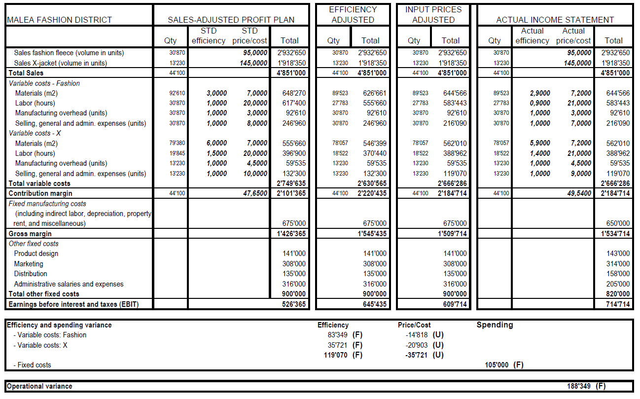 Calculez l'écart de rendement (efficience) de la matière pour la veste 'mode' (Fashion)