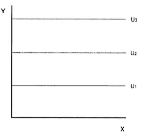 Laquelle de ces courbes d’indifférence ne peut pas être observée si la propriété de non saturation des préférences est respectée ?