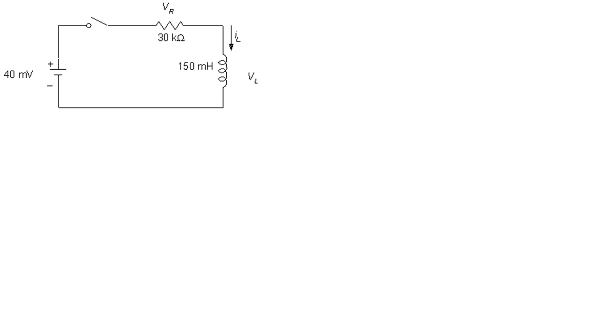 For the circuit of the figure below, what is the current after 2 time constants when the switch is closed?