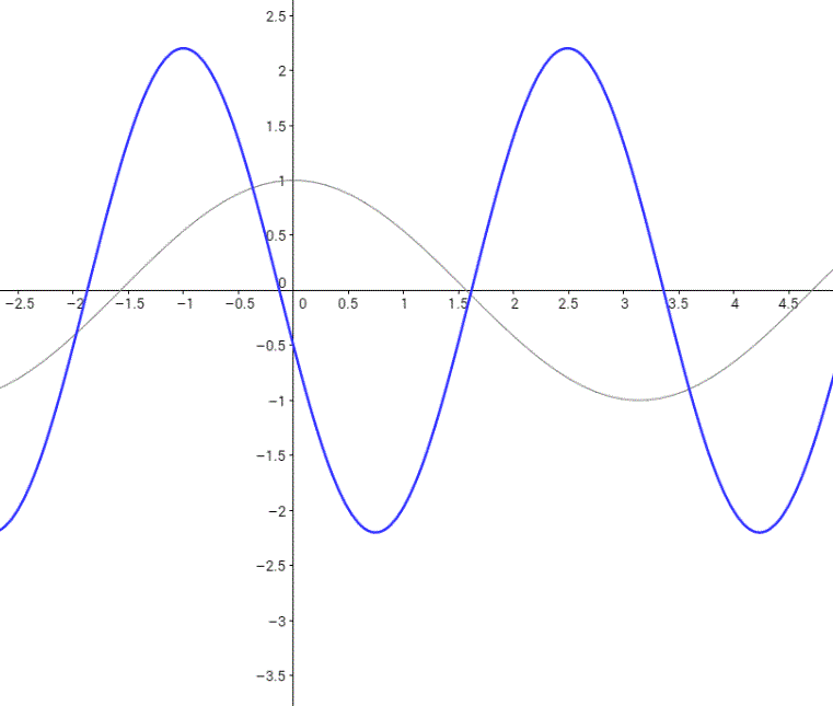 * La courbe grise ci dessous représente la fonction et la courbe bleue représente la fonction , avec , et .
