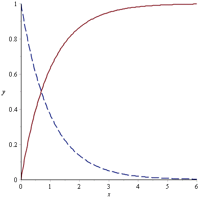 * La courbe bleue en pointillée ci dessous représente la fonction et la courbe rouge en trait plein représente la fonction , avec: