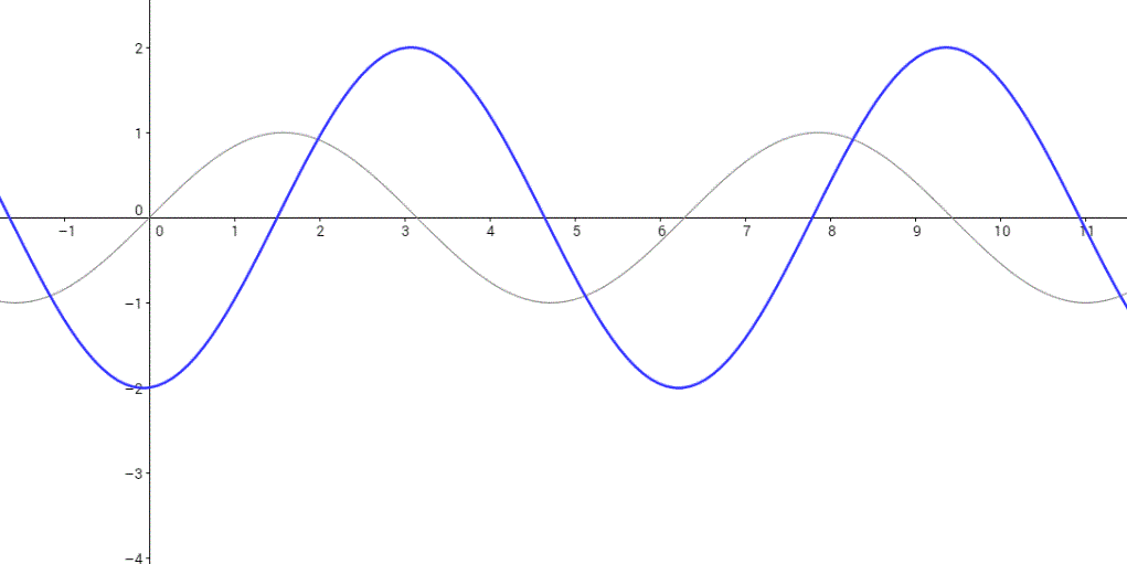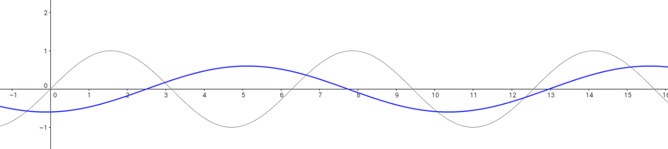 * La courbe grise ci dessous représente la fonction et la courbe bleue représente la fonction , avec , et .
