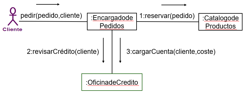 Cuál de los diagramas de colaboración refleja de forma correcta y completa el evento que se describe a continuación: