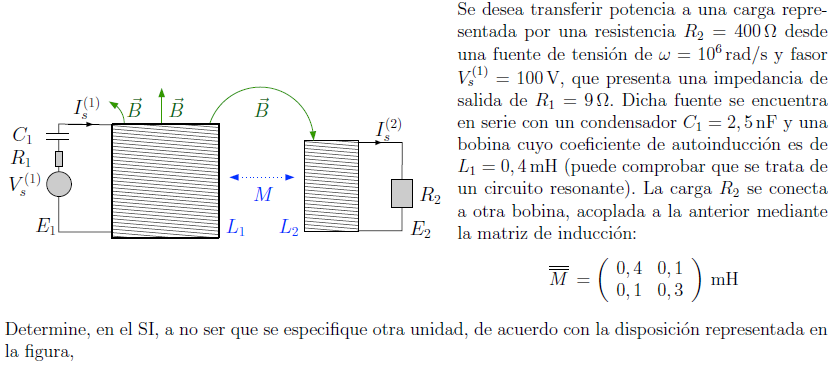 Se añade ahora un circuito cuadrado C, de 10 cm de lado, que puede girar en torno a un eje z' situado a 40 cm de z y paralelo a éste. Este circuito C tiene lados paralelos a z y perpendiculares; estos últimos son atravesados por z' en sus puntos medios. Halle, en H, el valor absoluto del coeficiente de inducción mutua entre C y es solenoide cuando . Puede utilizar el resultado: \).