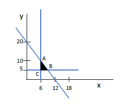 Si el área de posibilidades de producción es la señalada, indique el vértice del triángulo, A, B o C en el que producirá la cantidad optima de fabricación cuando la función objetivo es maximizar Beneficio=200x + 100y.