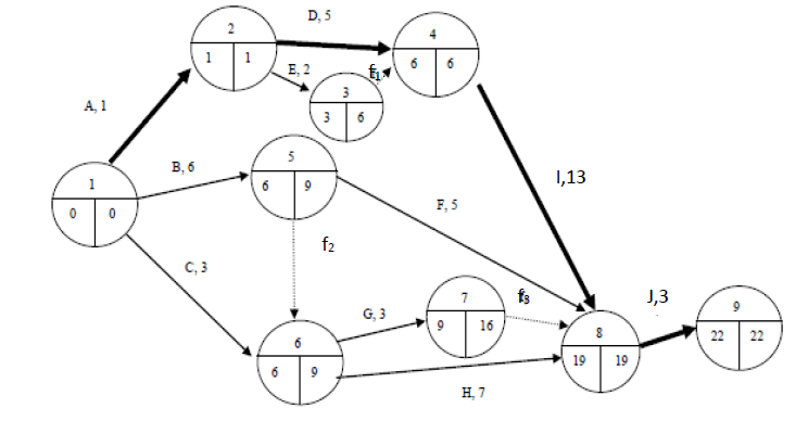 Dado el grafo Pert que aparece a continuación, señale las sentencias ciertas.