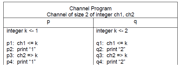Sea un programa concurrente que usa canales con buffer de tamaño 2. Indique la respuesta correcta