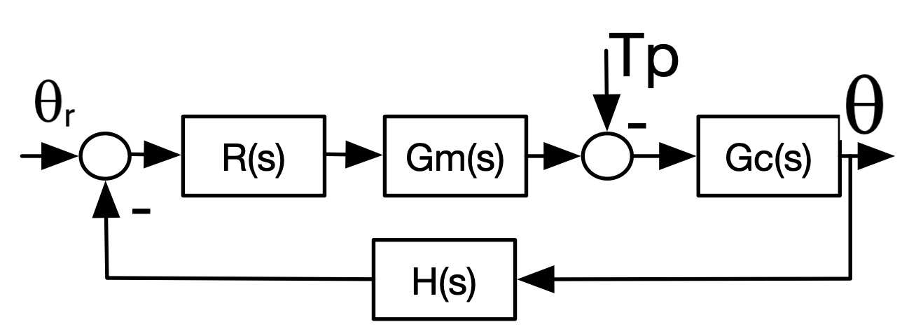 La figura representa el esquema de control de posición de un motor de corriente continua. Obtener el valor máximo que alcanza el incremento del ángulo cuando aumenta en 1°, sabiendo que