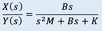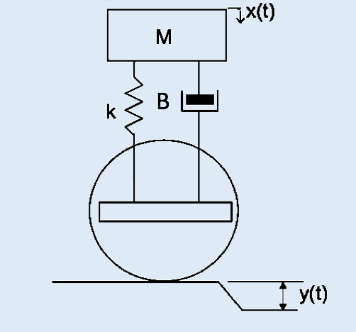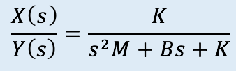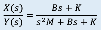 Calcular la función de transferencia del siguiente sistema, donde la entrada es el desplazamiento y(t) y la salida es el desplazamiento x(t)