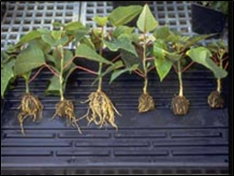 A estos esquejes se les ha aplicado hormonas antes de ponerlas en condiciones de enraizamiento. Las hormonas que favorecen el desarrollo de raíces son las giberelinas.