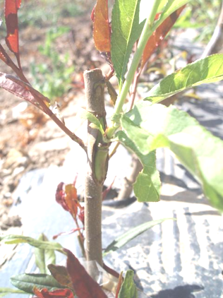 Esta variedad de melocotón ha sido injertada en el vivero sobre el patrón Nemared de hoja roja.