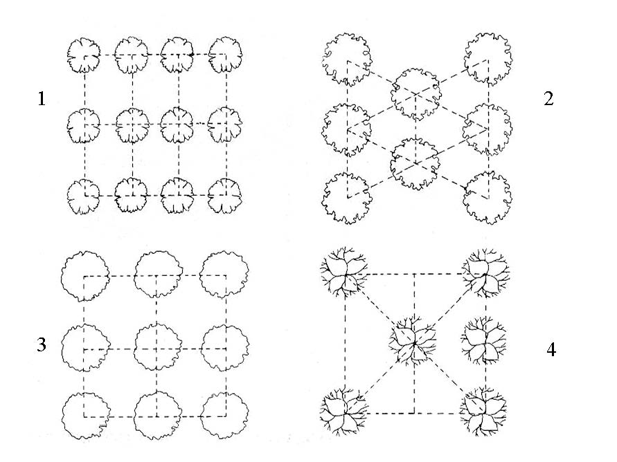 La forma de plantación 4 es al tres bolillo.