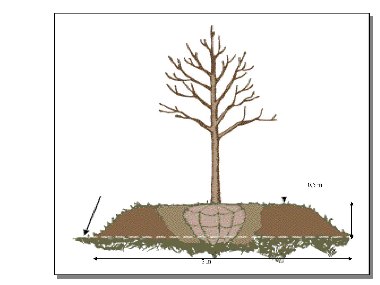 La plantación se establece en caballones o lomos para reducir el riesgo de encharcamiento. En parcelas con poco suelo permite que el árbol desarrolle mas cantidad de raíces.