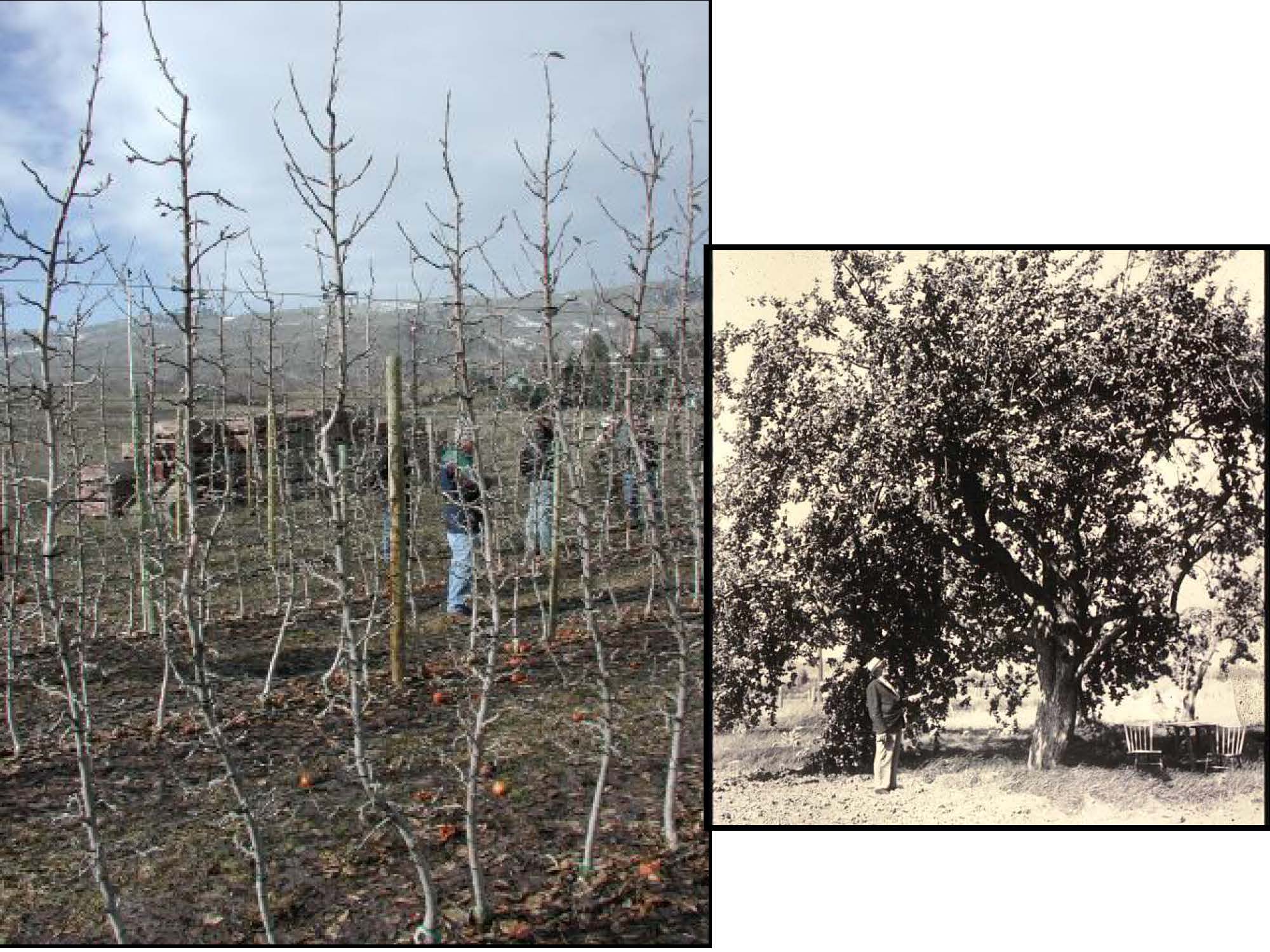 Las diferencias en el vigor del manzano entre estas fotografias se deben a que son diferentes variedades.