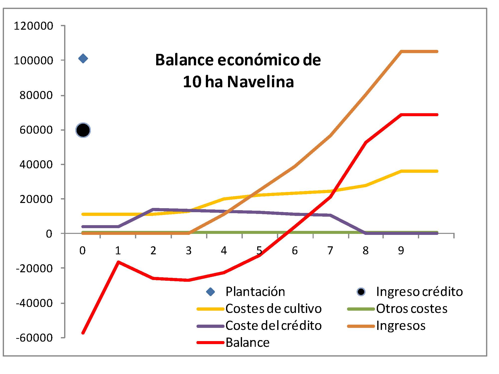 En esta plantación de cítricos los ingresos son superiores a los costes de inversión, del crédito y de cultivo al quinto año.