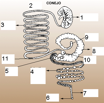 Digestivo de conejo adulto ¿Qué están señalando los números 4 y 5 ?