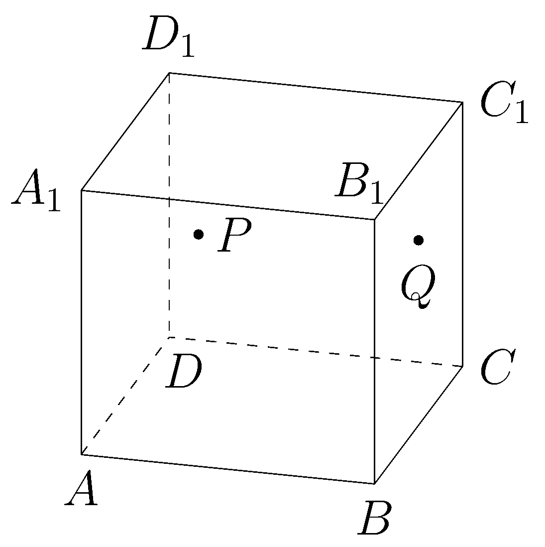 Konstrueerige kuubile lõige läbi punktide , ja , kui punkt asub tahul ja asub tahul . Joonestage sarnane kuup omale vihikusse, lahendus laadige üles pildina.