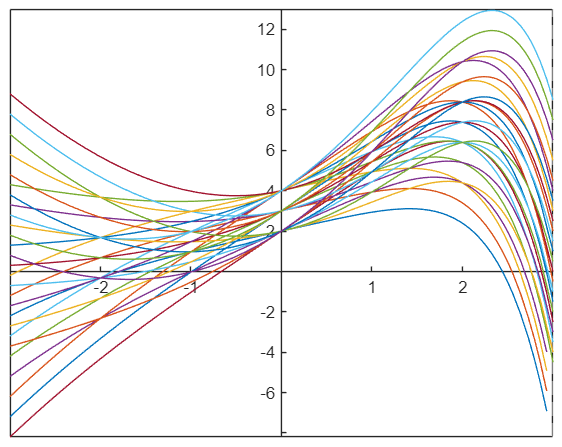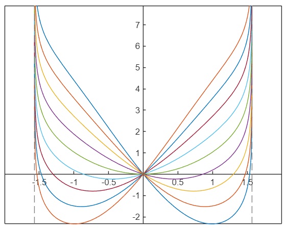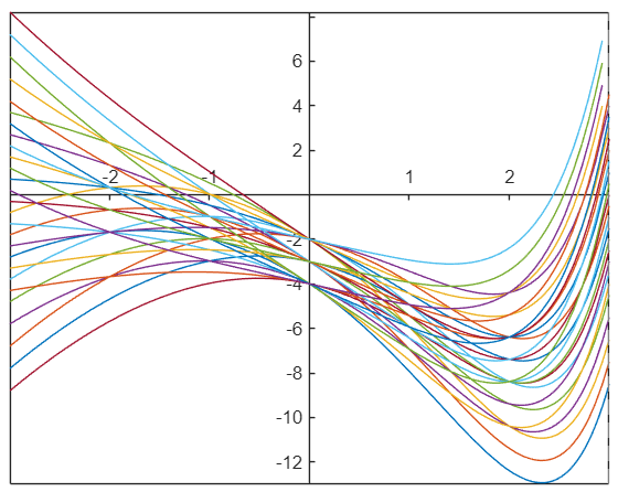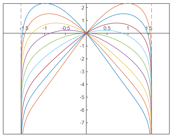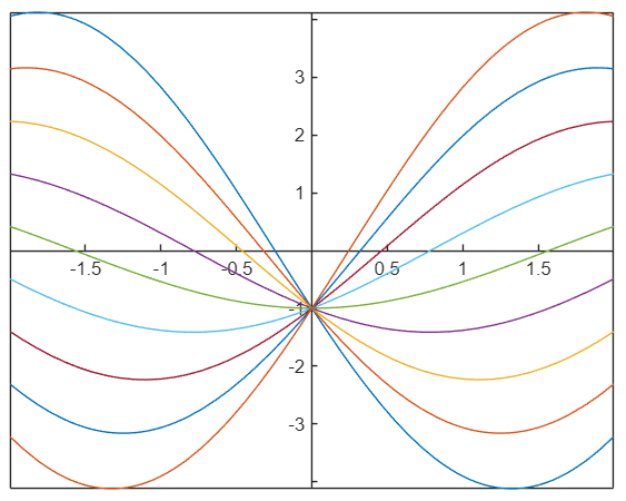 Nubrėžkite diferencialinės lygties atsakymą atkarpoje nuo -2 iki 2 ir pasirinkite taisyklingą atsakymą.