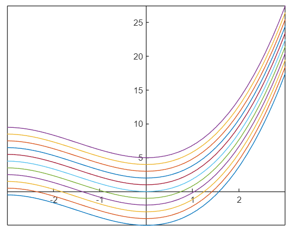 Nubrėžkite diferencialinės lygties atsakymą atkarpoje nuo -3 iki 3 ir pasirinkite taisyklingą atsakymą.