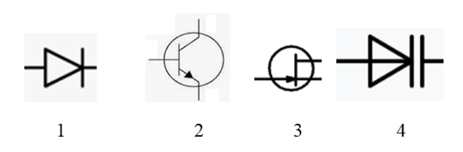 1) діод; 2) біполярний транзистор; 3) інтегральна мікросхема; 4) польовий транзистор