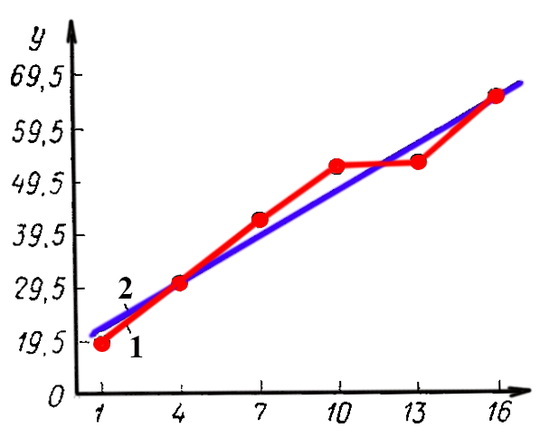 Червоним кольором показана теоретична лінія регресії?