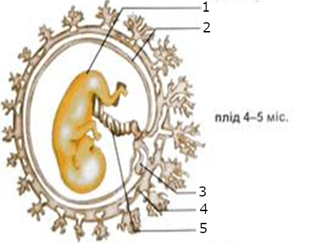 Вкажіть відповідність між похідними мезодерми та цифрами, якими вони позначені