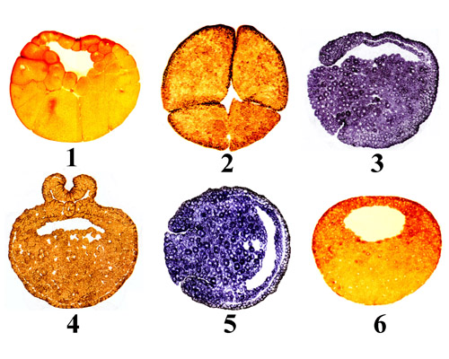 Виберіть номери із зображенням гаструл і вкажіть іх послідовність під час гаструляції.