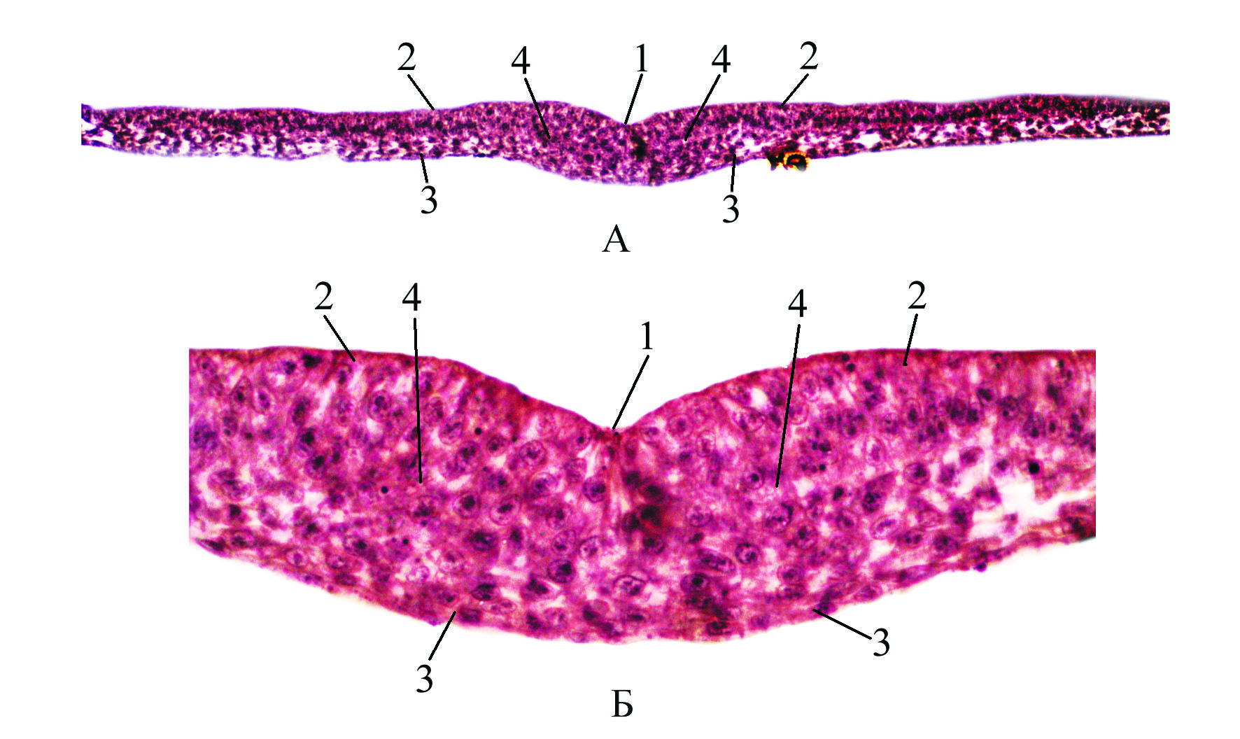 Що показано на поперечному зрізі зародка жаби цифрою 2 ?