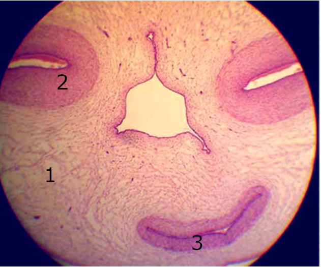 Розгляньте фотографію препарата пуповини і дайте відповідь на питання