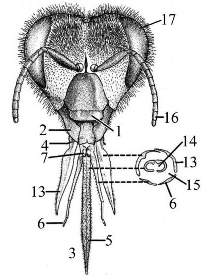 Колючо-сисний ротовий апарат у кровосисних комарів характеризується тим, що: