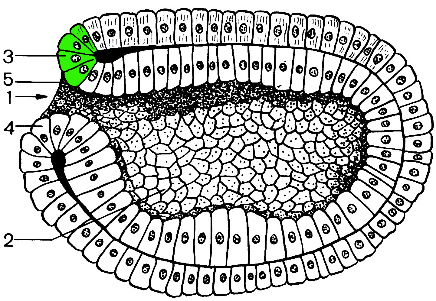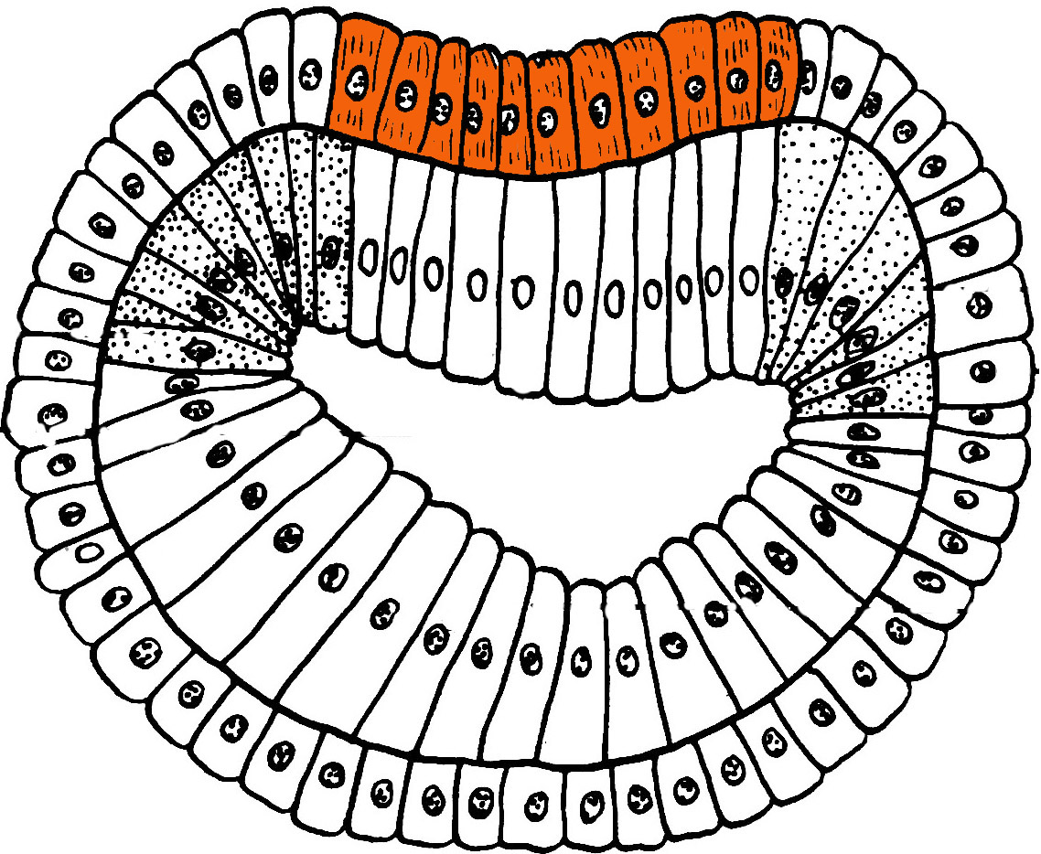 Зафарбована ділянка відповідає зачатку хорди.