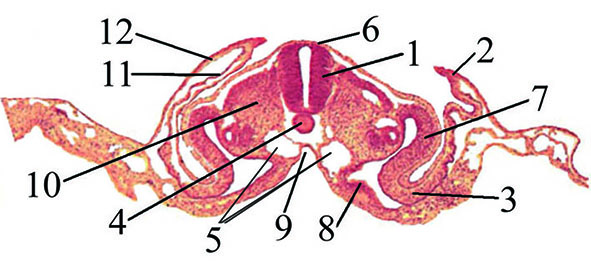 Поперечний зріз зародка курки (приблизно після 3 діб інкубації).