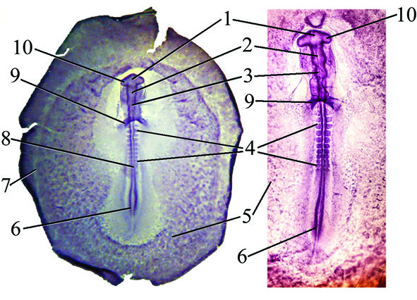 Поперечний зріз зародка курки (стадії 96 годин інкубації).