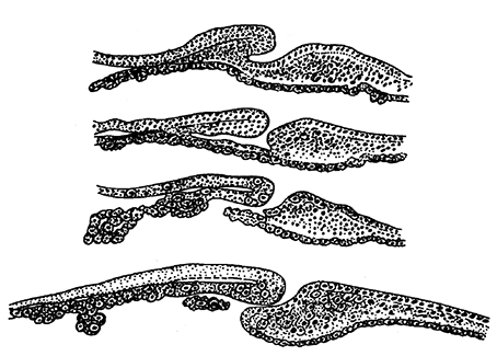 На рисунку вказані послідовні стадії 2-ї фази гаструляції: