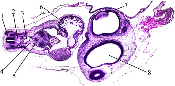 Поперечний зріз зародка курки (стадії 96 годин інкубації).
