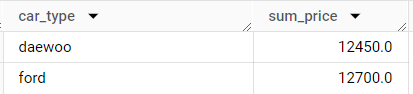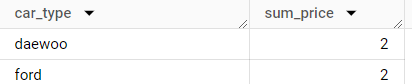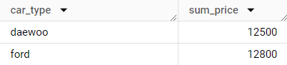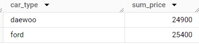 SELECT car_type, SUM(price) as sum_priceFROM carsGROUP BY car_type;якщо є така таблиця БД: