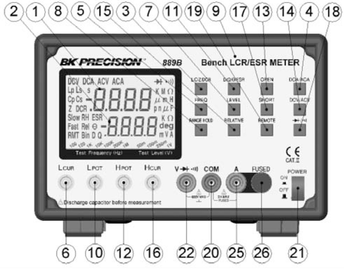 When measuring energy storage devices (e.g. capacitors, inductors) on the LCR/ESR meter or some of the other meters, it is IMPORTANT to discharge them before connecting them to the meter as the release of energy into the meter may seriously damage the meter.