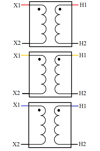 For each diagram, assume the primary is on the left and the secondary is on the right.