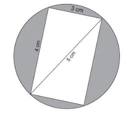 Consider the diagram below with measurements indicated on it. The rectangle of diagonal 5 cm fit perfectly into the circle. Calculate the area of the shaded part of the diagram, correct to two decimal places.