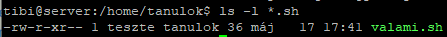 Az aktuális könyvtárba tibi nevű felhasználó van bejelentkezve Figyelje meg a lista parancs kimenetét és válassza ki a lenti helyes állításokat! (A valami.sh valós működő script)